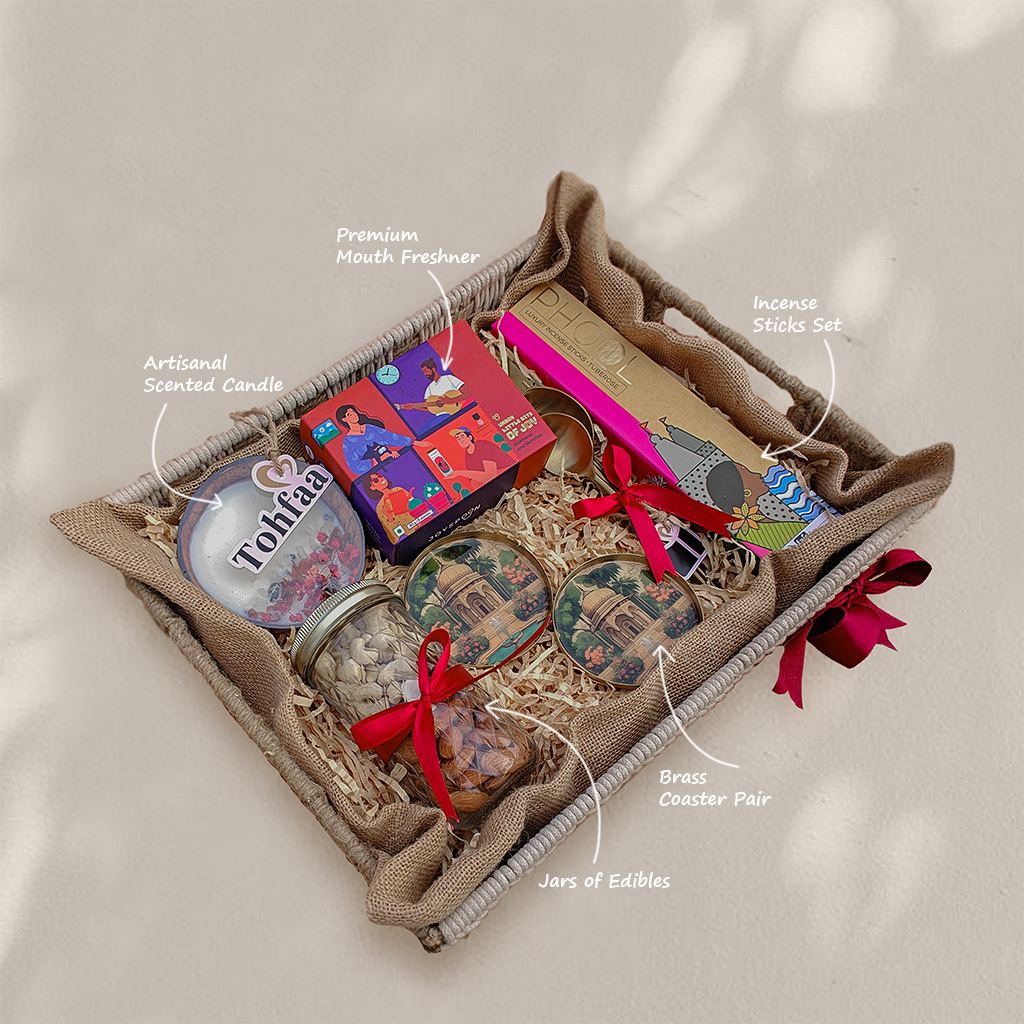 Celebrate traditions with a touch of grandeur. The Regal Celebration Tray is thoughtfully curated to reflect the richness of Indian heritage and modern sophistication.